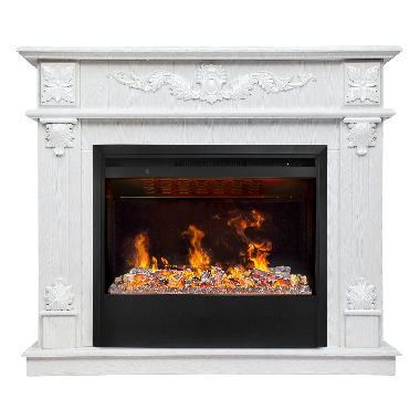 Электрический камин Elford с очагом 3D Oregan. Изготовлен из МДФ (белый дуб: WT-614) и литого камня. Очаг имеет 3D эффект…