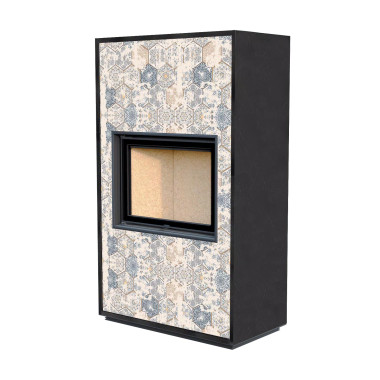 Печь камин ABX BAVARIA K (6,9 кВт в воду), кафельный цоколь – вставка КОМБО (чугун + сталь) – это изразцовая…