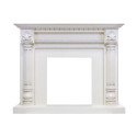Высокий постамент, на котором расположен портал, выгодно возвышает камин, делая его основной частью любого интерьера. Изображения византийских колонн, увенчанных импостом с орнаментом, визуально поддерживают тонкую столешницу, которая завершает каминный ансамбль.