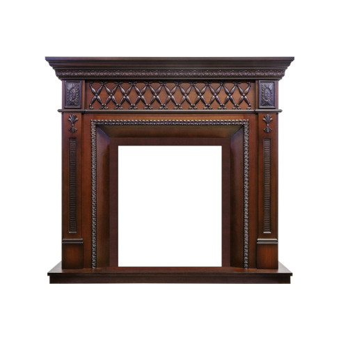 Зона очага изысканно обрамлена витым орнаментом, импосты и колонны, расположенные по бокам портала, не имеют яркой выраженности и обозначены лишь легким классическим барельефом.