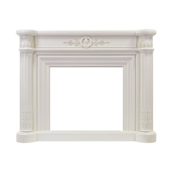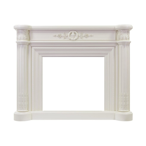 Обрамление для камина сделано из высококачественных материалов. Резной декор украшает фронтальную поверхность портала, а зона очага обрамляется изящными колоннами.