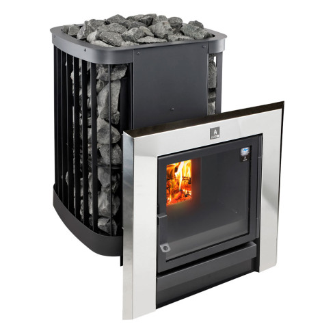 Печь для бани и сауны с выносной топкой. Рамка - нержавеющая стальОбъем парилки: 8-24 м3