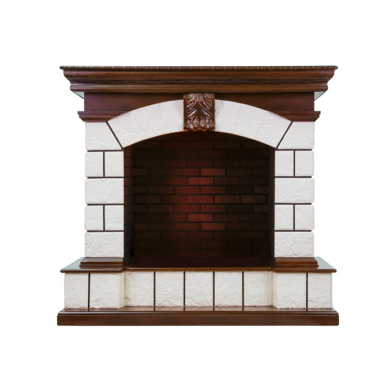 Обрамление выполнено из материала, имитирующего натуральный камень. Широкая столешница позволит разместить на камине предметы декора. Портал выглядит массивным и станет ярким акцентом гостиной, кабинете или столовой.