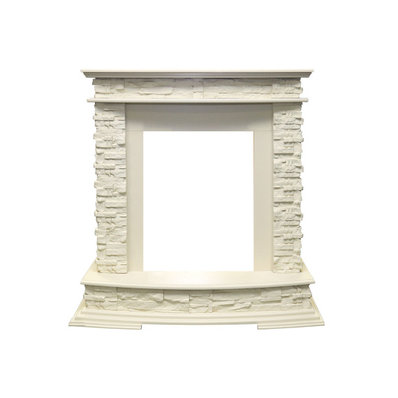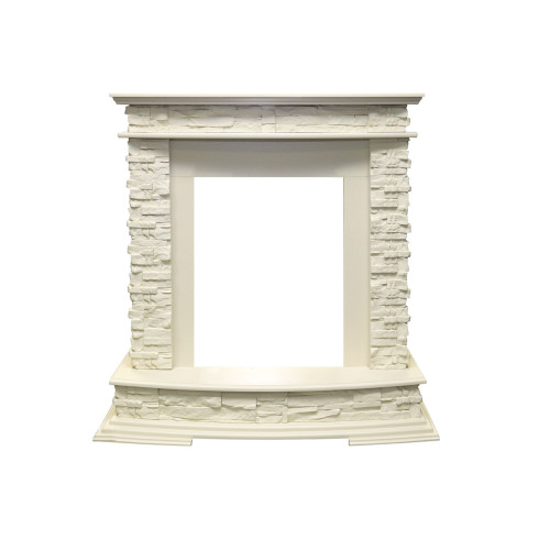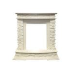 Портал выполнен из дерева и камня. Широкий постамент делает небольшую модель визуально более представительной. Фронтальная часть обрамления сделана без дополнительного декора в стиле кантри. Эта модель будет органично смотреться в классическом интерьере или в доме в стиле шале.