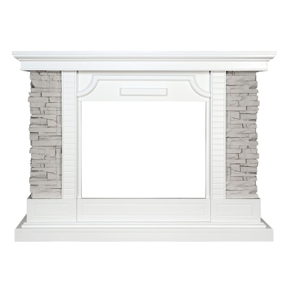 Каминный портал Avignon выполнен из дерева и серого сланца, который имитирует камень. Декорирован боковыми колоннами и строгими узорами на деревянных деталях. Роскошное сочетание белого и серых цветов придают ему утонченности и изысканности.