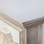 Технические характеристики Материал корпуса МДФ/шпон Цвет корпуса белый дуб с золотой патиной Габаритные размеры (В×Ш×Г) мм: 1130 x 1477 x 455