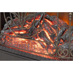 Иллюзия огня в топке создается с помощью специальной подсветки, действие которой усиливает технология имитации звуков горящих поленьев. Этой же цели служат мерцающие светодиодные дрова, которые используются в качестве декоративного топлива.