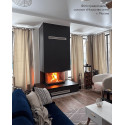 Номинальная теплопроизводительность устройства 8 кВт. Оптимальный объём зала 200 м3. Вы будете чувствовать себя комфортно, даже если очаг горит круглосуточно.
