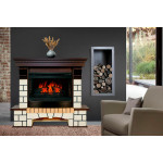 Топка очага оборудована декоративными светодиодными поленьями, которые подсвечиваются по принципу настоящих. Их мерцание дополняет характерный звук потрескивания дров. Это помогает усилит впечатление от игры «пламени» в очаге.