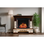 Игра пламени в очаге, создаваемая с помощью современных технологических разработок, удачно дополняется светодиодными поленьями, по внешнему виду напоминающими настоящие, и характерными звуками горящего огня. Подсвечиваемая кирпичная кладка в топке усиливает эффект натуралистичности очага.