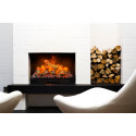 В очаге предусмотрена функция потрескивания горящих поленьев. Также добавлены такие опции, как возможность изменения интенсивности пламени в различных зонах очага и управление камином через беспроводной Bluetooth пульт ДУ.
